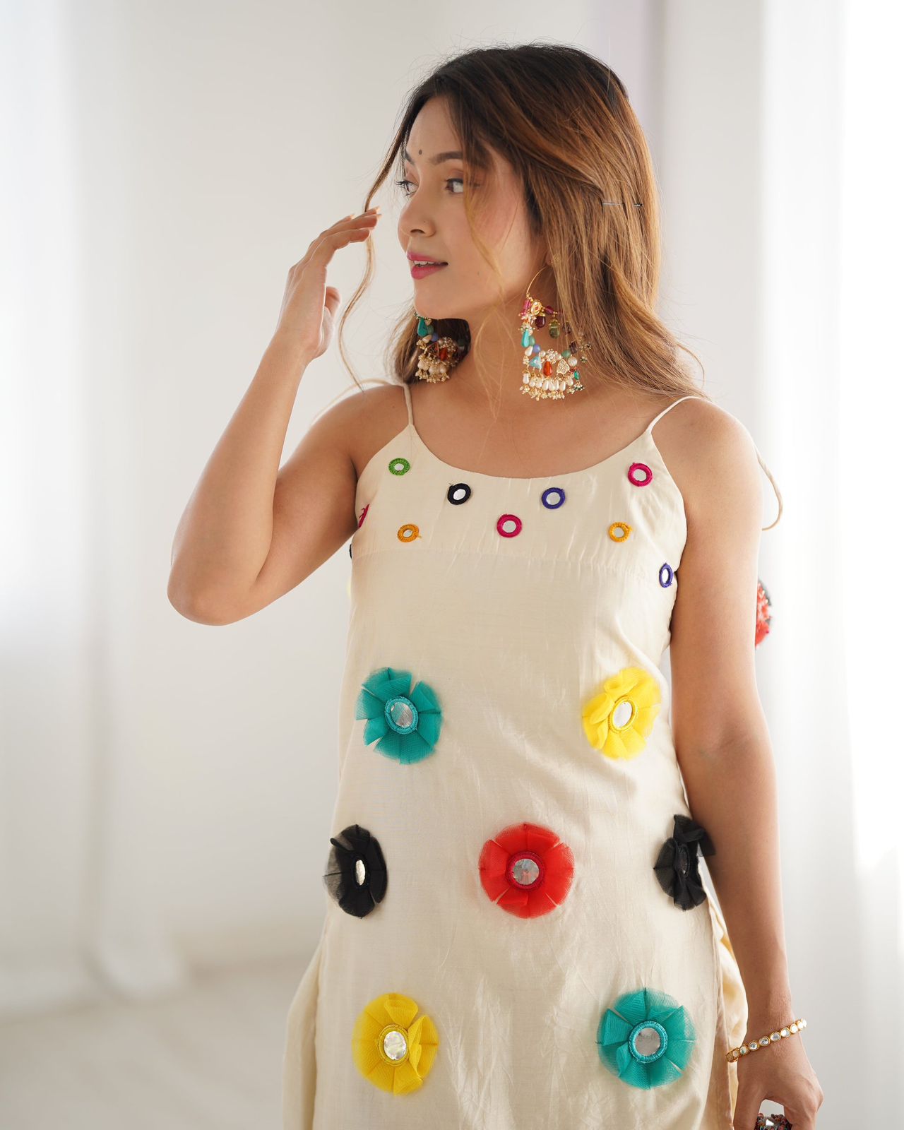 Top : Crafted from premium Khadi Cotton with delicate Mirror Khatli Work for a touch of sparkle.