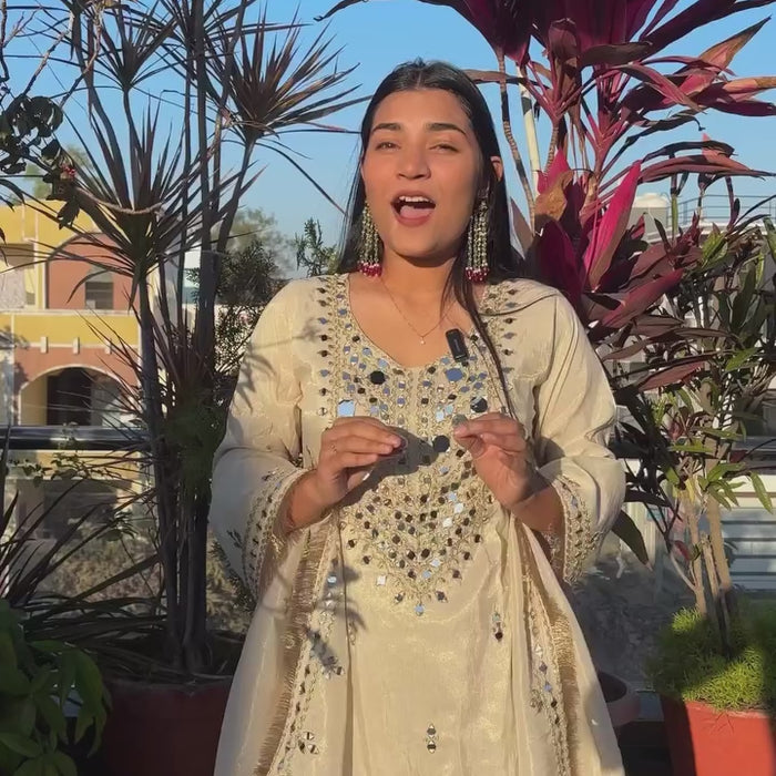 The spotlight with our Sitara Sparkle Real Mirror Designer Plazzo Set, a breathtaking ensemble crafted for grand celebrations, wedding soirées, festive gatherings, and special occasions. Designed for women who love to shine with grace, this outfit beautifully blends traditional craftsmanship with modern elegance.