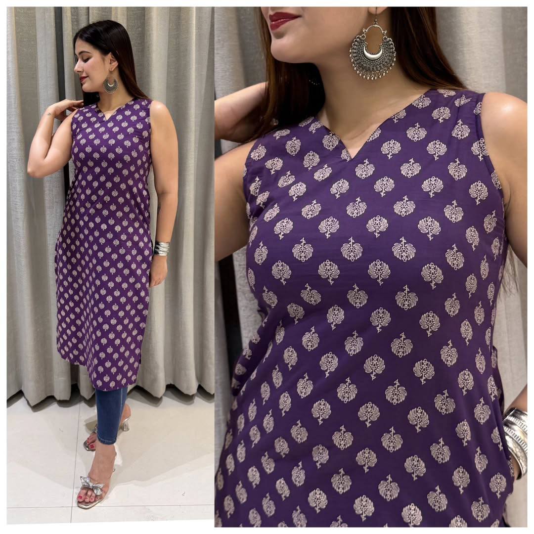 Stay cool and stylish every day with this comfortable sleeveless cotton printed kurti. Designed for both casual outings and office wear, it offers a smart and breezy look while keeping you comfortable all day long.